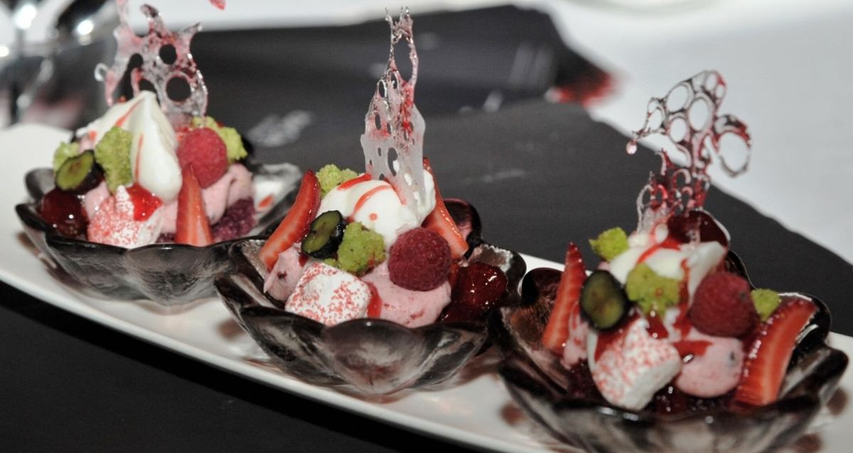 Το μωσαϊκό της γευστικής εμπειρίας συνθέτουν υπέροχοι συνδυασμοί από αρωματισμένο τσάι κόκκινων φρούτων, σορμπέ raspberry με μαριναρισμένα κεράσια, ρόδι με γιαούρτι, cheese cake με μαριναρισμένες φράουλες, πετροκέρασο με πέντε είδη δημητριακών και blueberry σορμπέ με μέλι ανθέων.