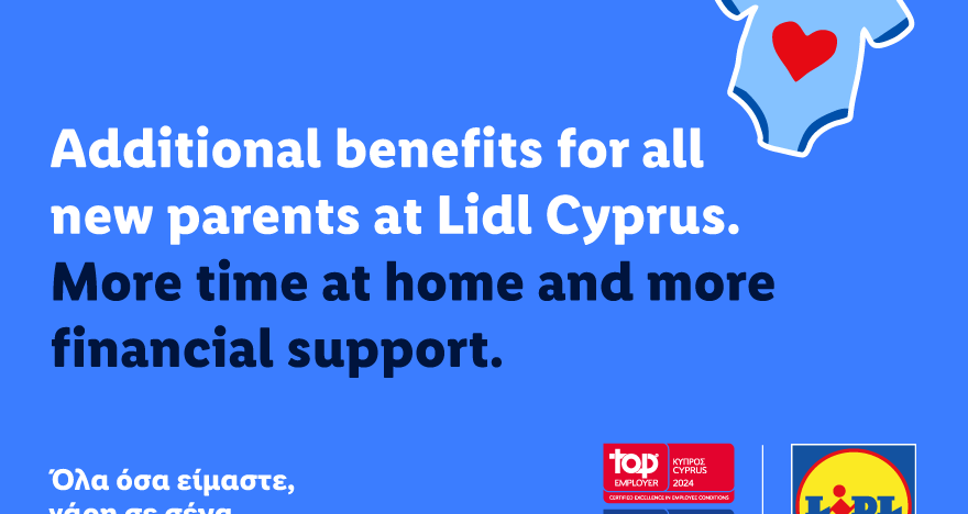 Από την 1η Ιουλίου 2024, η Lidl Κύπρου προχώρησε σε επιπρόσθετες παροχές για τους νέους γονείς της ομάδας της. Λαμβάνοντας ενεργή θέση απέναντι στο διαχρονικά υψηλό ποσοστό υπογεννητικότητας που αντιμετωπίζει η χώρα και με στόχο να υποστηρίξει τις νέες οικογένειες κατά τον ερχομό κάθε νέου μέλους, δημιούργησε ένα πακέτο παροχών που προσφέρει περισσότερο χρόνο και υποστήριξη για την οικογένεια καθώς και σημαντική οικονομική ενίσχυση.