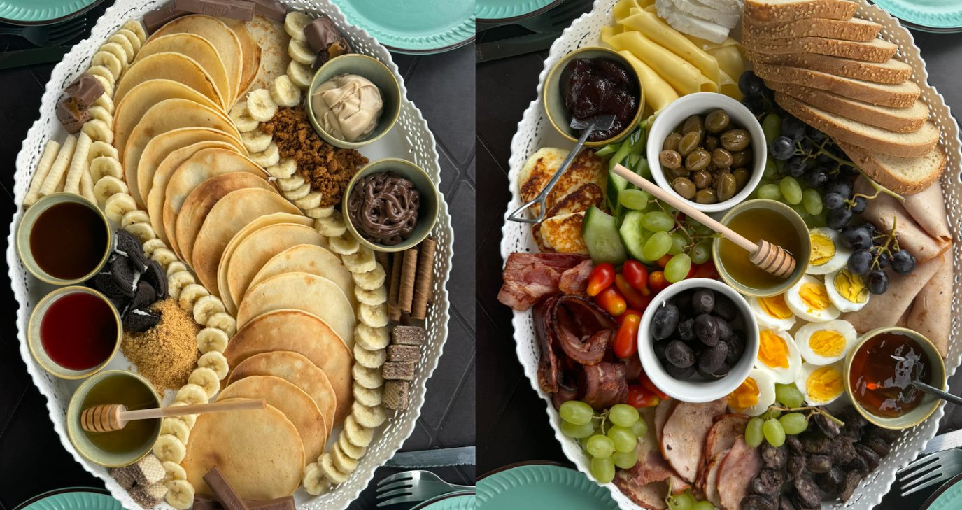 Θα προσφέρεται ένα πλούσιο παραδοσιακό platter με αβγά, τυριά, αλλαντικά, ελιές, ψωμί κ.α για 4 άτομα και ένα platter με pancakes και toppings.