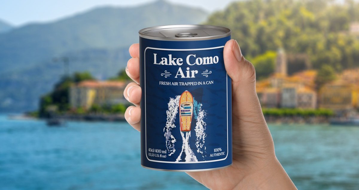 Τώρα όμως, η εταιρεία επικοινωνιών ItalyComunica δηλώνει ότι έχει εμφιαλώσει… τον αέρα της Λίμνης Κόμο και πουλά το κάθε κουτάκι προς €9,90.