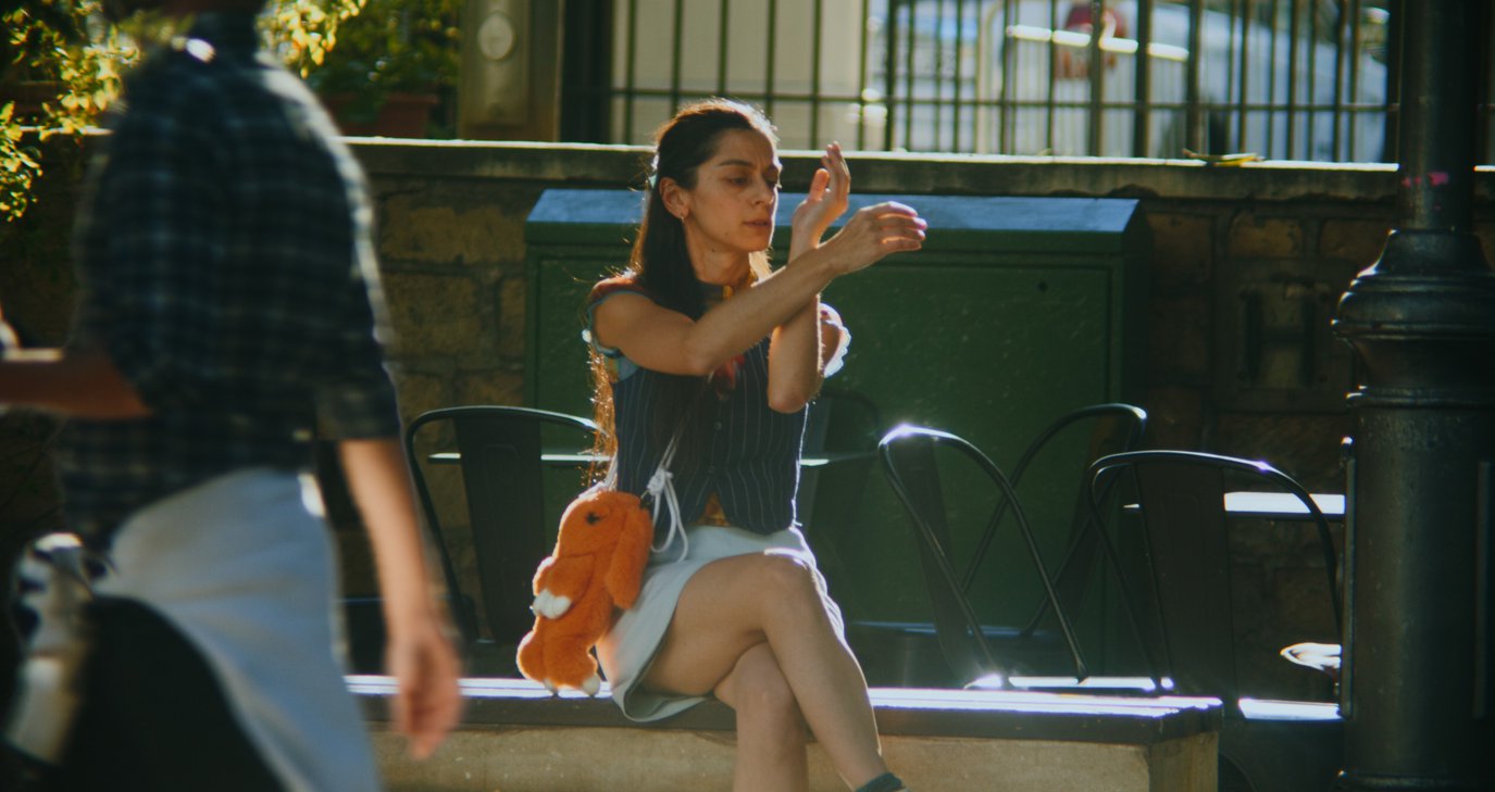 Ενσωματωμένη σε μια κοινωνία με γρήγορους ρυθμούς, μια νεαρή γυναίκα αντανακλά τον προσωπικό της ρυθμό.