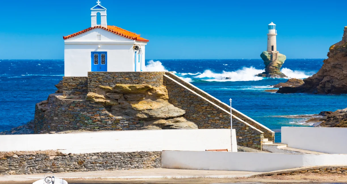 Κεντρική εικόνα: Ο Φάρος Τουρλίτης στο βάθος, στην Άνδρο / Φωτογραφία: Shutterstock