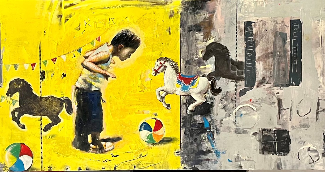 Πρόκειται για μια έκθεση με 2 ενότητες. Προσόψεις σπιτιών με ελπιδοφόρα grafiti … λέξεις που αντιστέκονται και ξορκίζουν τη θλίψη του καιρού μας. Παιδάκια που στέκονται έκπληκτα μπροστά σε ρημαγμένα παράθυρα και νοερά δημιουργούν φανταστικές εικόνες χαράς, ελπίδας, ονείρου και αγάπης.