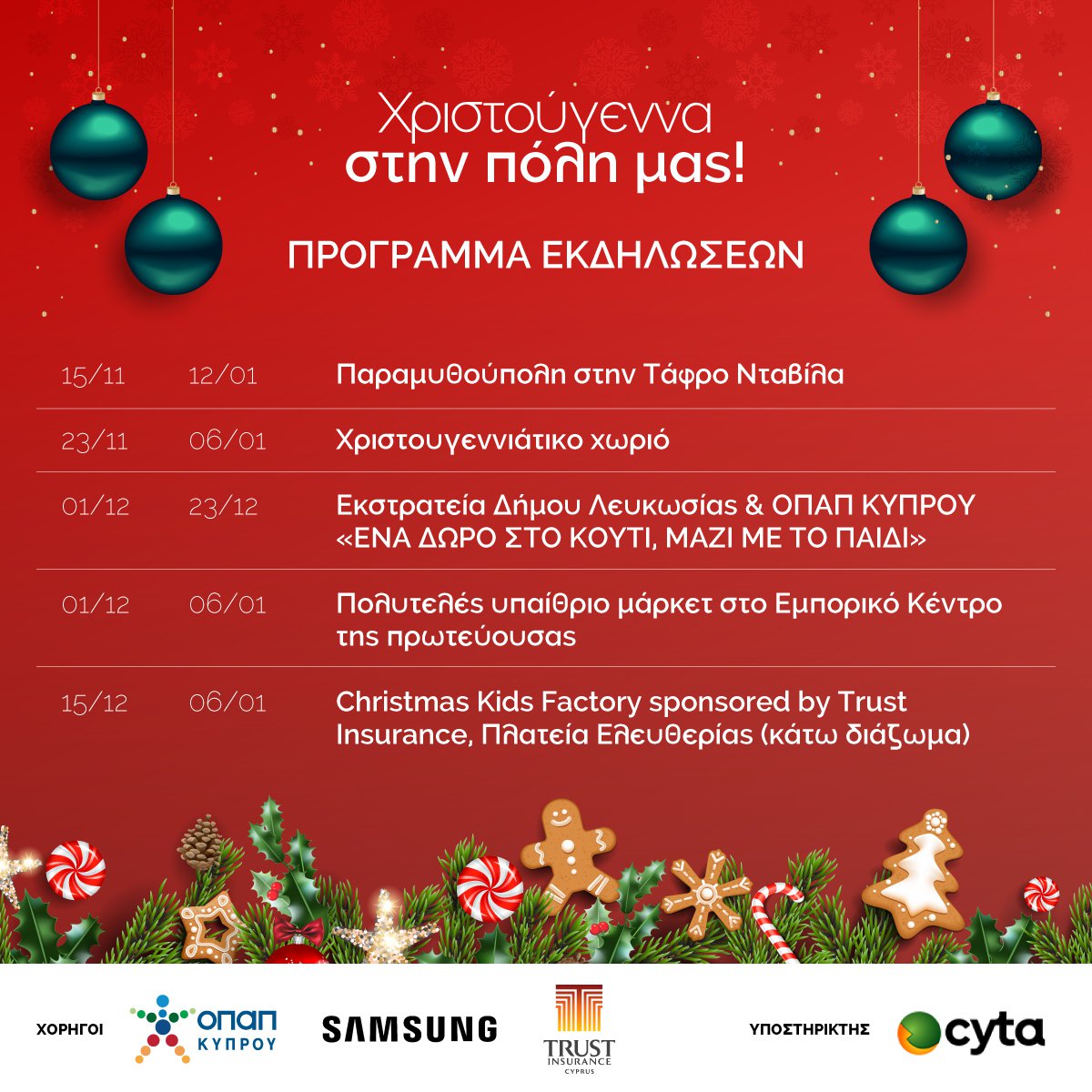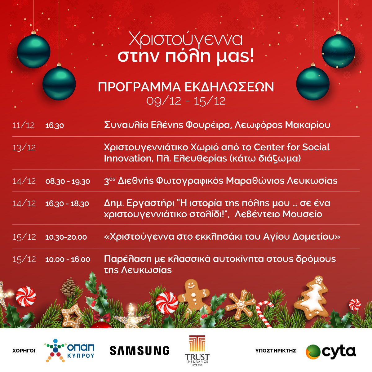 Πλούσιο χριστουγεννιάτικο πρόγραμμα και το Σαββατοκύριακο 14 & 15 Δεκεμβρίου στο Δήμο Λευκωσίας, με ποικίλες εκδηλώσεις και δραστηριότητες!!