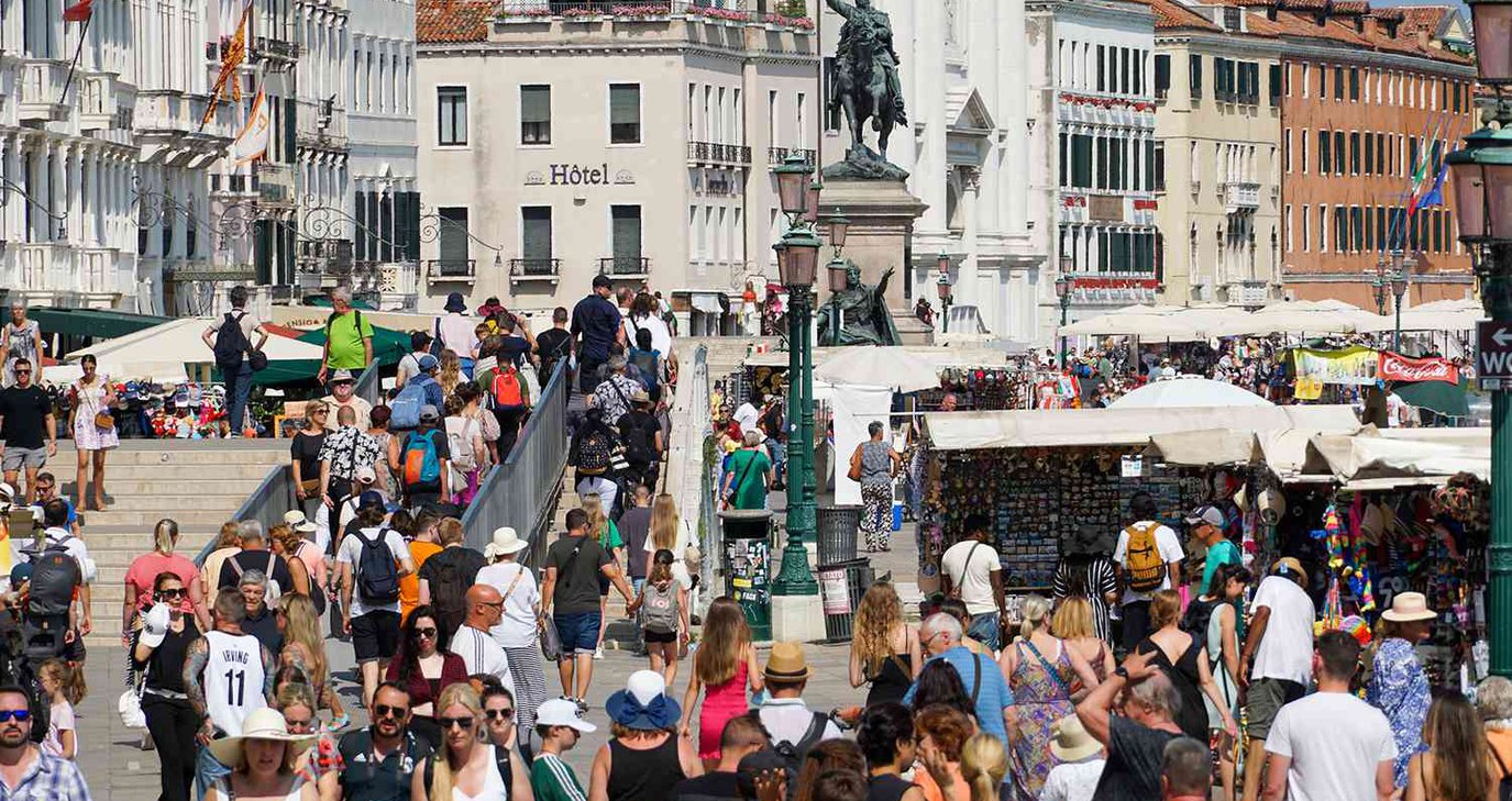 Τα κρουαζιερόπλοια και τα σμήνη των τουριστών έχουν κατακλύσει την ιστορική πόλη, με αποτέλεσμα τα κανάλια της να υποφέρουν από «πλωτή» κυκλοφοριακή συμφόρηση, οι υποδομές να καταστρέφονται και οι τιμές να έχουν εκτοξευθεί στα ύψη. Ο ντόπιος πληθυσμός μειώνεται καθώς οι Βενετσιάνοι φεύγουν, λόγω της μη βιώσιμης τουριστικής υπερεκμετάλλευσης. Την περασμένη άνοιξη, σε μια προσπάθεια να διαχειριστεί την εισροή τουριστών, η πόλη έθεσε σε ισχύ ένα τέλος εισόδου για τους ημερήσιους ταξιδιώτες και έχει περιορίσει τα κρουαζιερόπλοια που ελλιμενίζονται στις ακτές της.