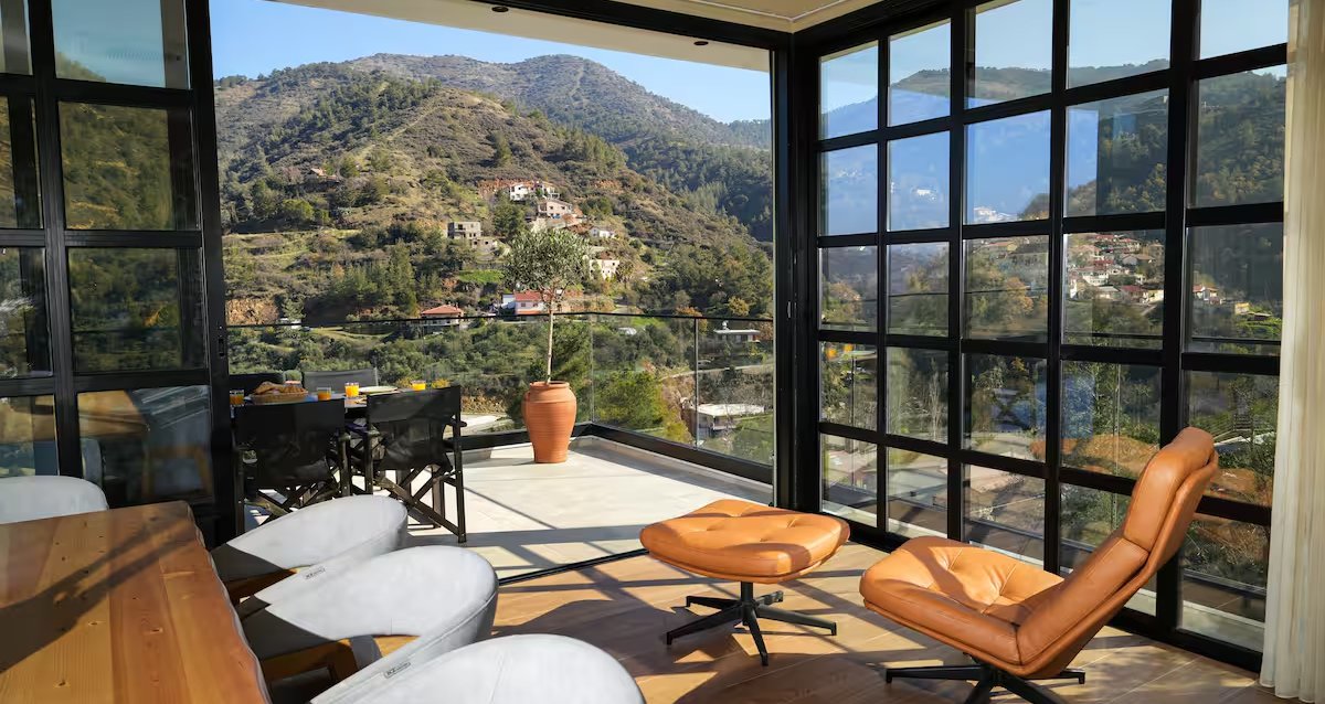 Πρόκειται για μία μοντέρνα σχεδιασμένη κατοικία, με στοιχεία του τόπου όπως η πέτρα του Τροόδους, το ξύλο και το μέταλλο. Ένα σπίτι το οποίο διαθέτει δύο ορόφους, δύο κουζίνες και σαλόνια, πέντε υπνοδωμάτια και πέντε μπάνια όπου μπορείς να φιλοξενήσει μεγάλες παρέες και οικογένειες για μοναδικές διανυκτερεύσεις.