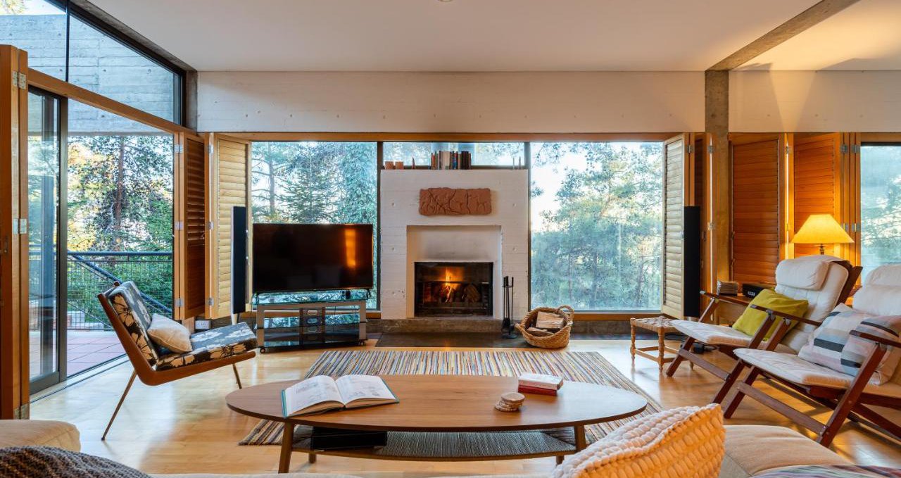 Το υπέροχο εσωτερικό της βίλας προσφέρεται πλήρως επιπλωμένο με μια εξαιρετική συλλογή επίπλων και έργων τέχνης. Είναι πολυτλές, ευρύχωρο, με ένα υπέροχο τζάκι που κάνει την ατμόσφαιρα ακόμα πιο ζεστή.