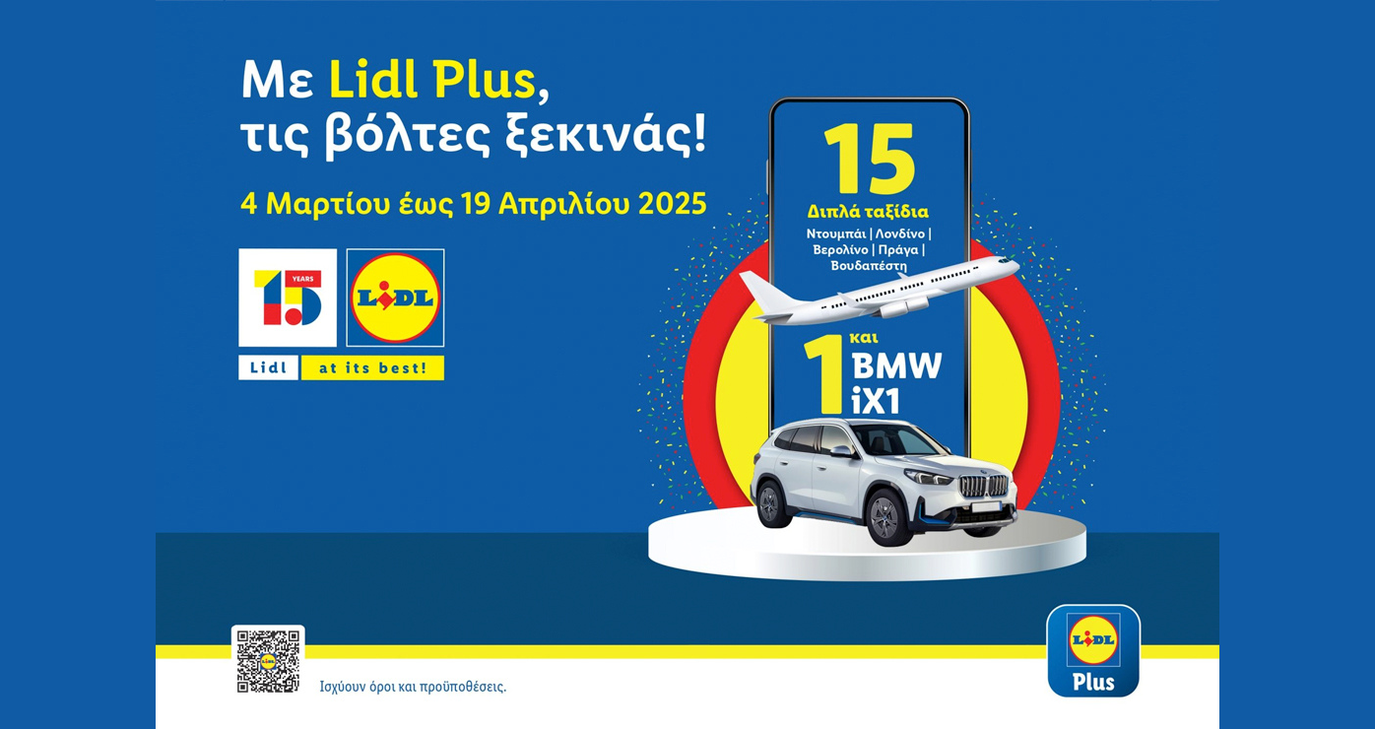 Η εταιρεία, μέχρι και τις 19 Απριλίου, μέσα από το πρόγραμμα πιστότητας Lidl Plus, χαρίζει 15 ταξίδια για δύο άτομα σε μοναδικούς προορισμούς του εξωτερικού, καθώς και το νέο, πολυτελές, ηλεκτρικό BMW iX1!