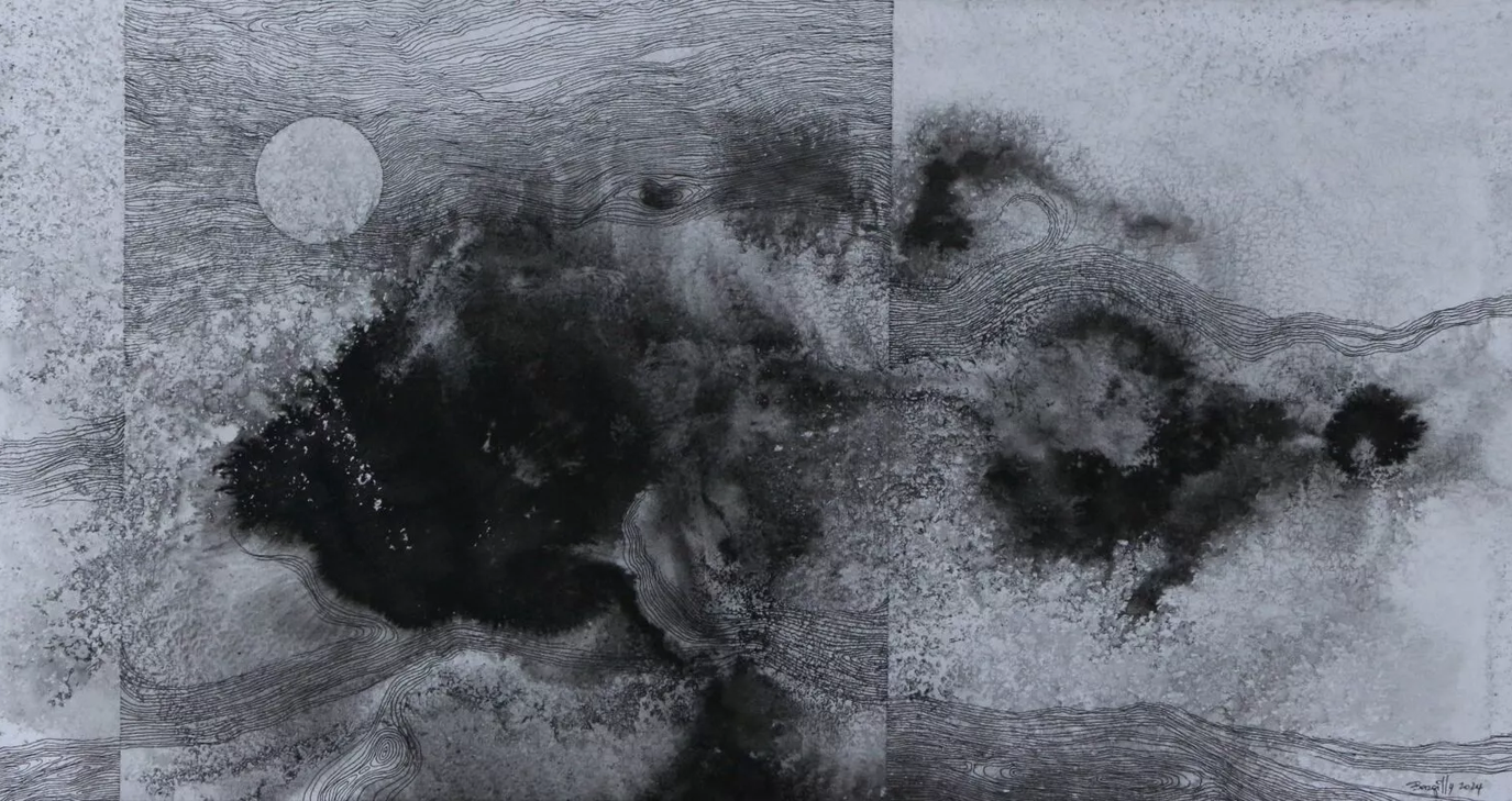 Η πρόσφατη θεματική ενότητα, που δημιουργήθηκε κατά κύριο λόγο με τη χρήση μελανιού, προσκαλεί τους θεατές σ’ ένα υπερβατικό ταξίδι τόσο στα ουράνια τοπία όσο και στα αχανή, αχαρτογράφητα εδάφη του νου και της ψυχής. Με ρευστές πινελιές και περίπλοκες λεπτομέρειες, ο καλλιτέχνης αιχμαλωτίζει την αιθέρια ομορφιά της φύσης, ενώ παράλληλα εμβαθύνει σε βαθύτερα, ενδοσκοπικά πεδία.