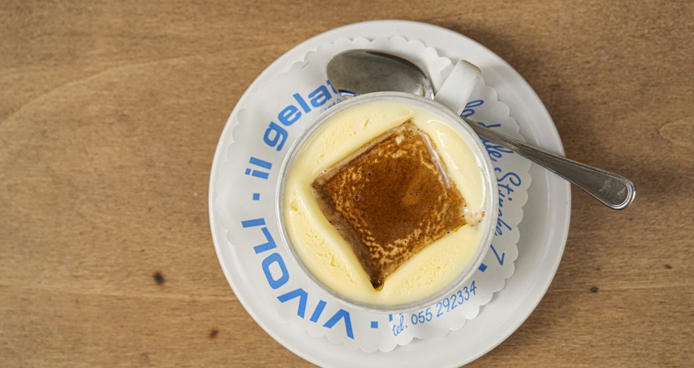 Το βρίσκεις στο Vivoli, ένα ιστορικό ζαχαροπλαστείο στην καρδιά της Φλωρεντίας, στην οδό Via Isola delle Stinche. Κι αν δεις ουρά που θυμίζει συναυλία pop star, μην απορήσεις – όλοι έρχονται για το ίδιο πράγμα: αυτό το τέλειο μείγμα καφέ και παγωτού που έχει κατακτήσει το Instagram και το TikTok.