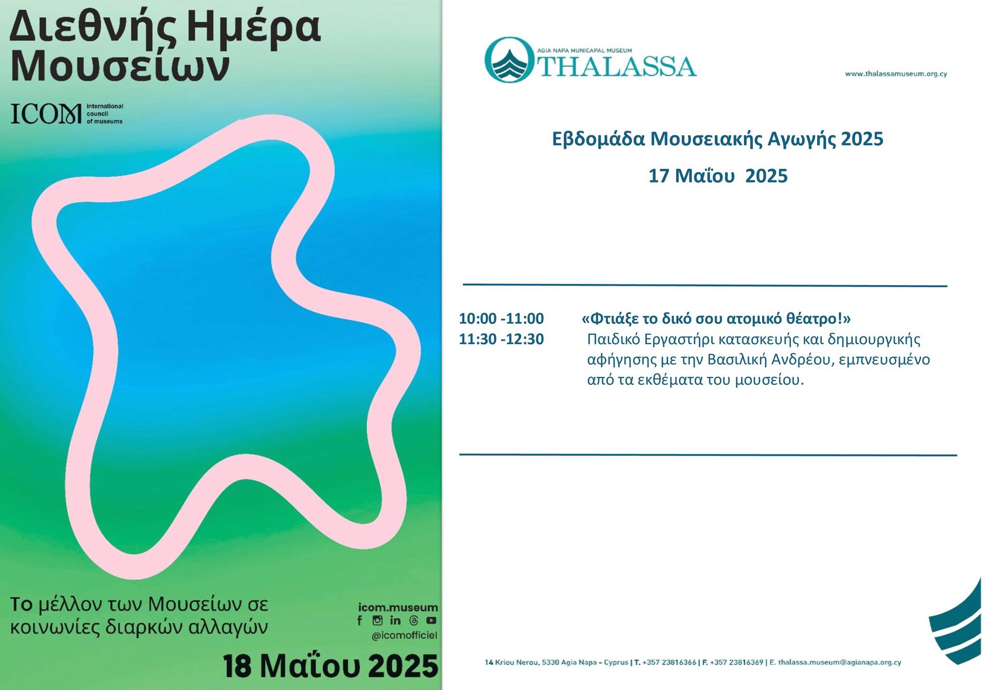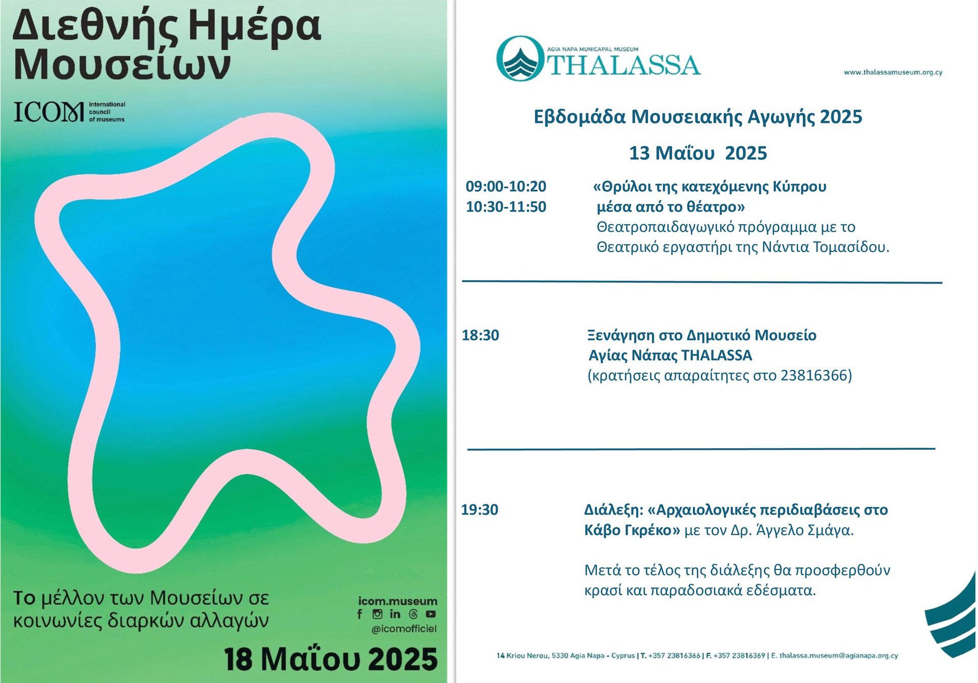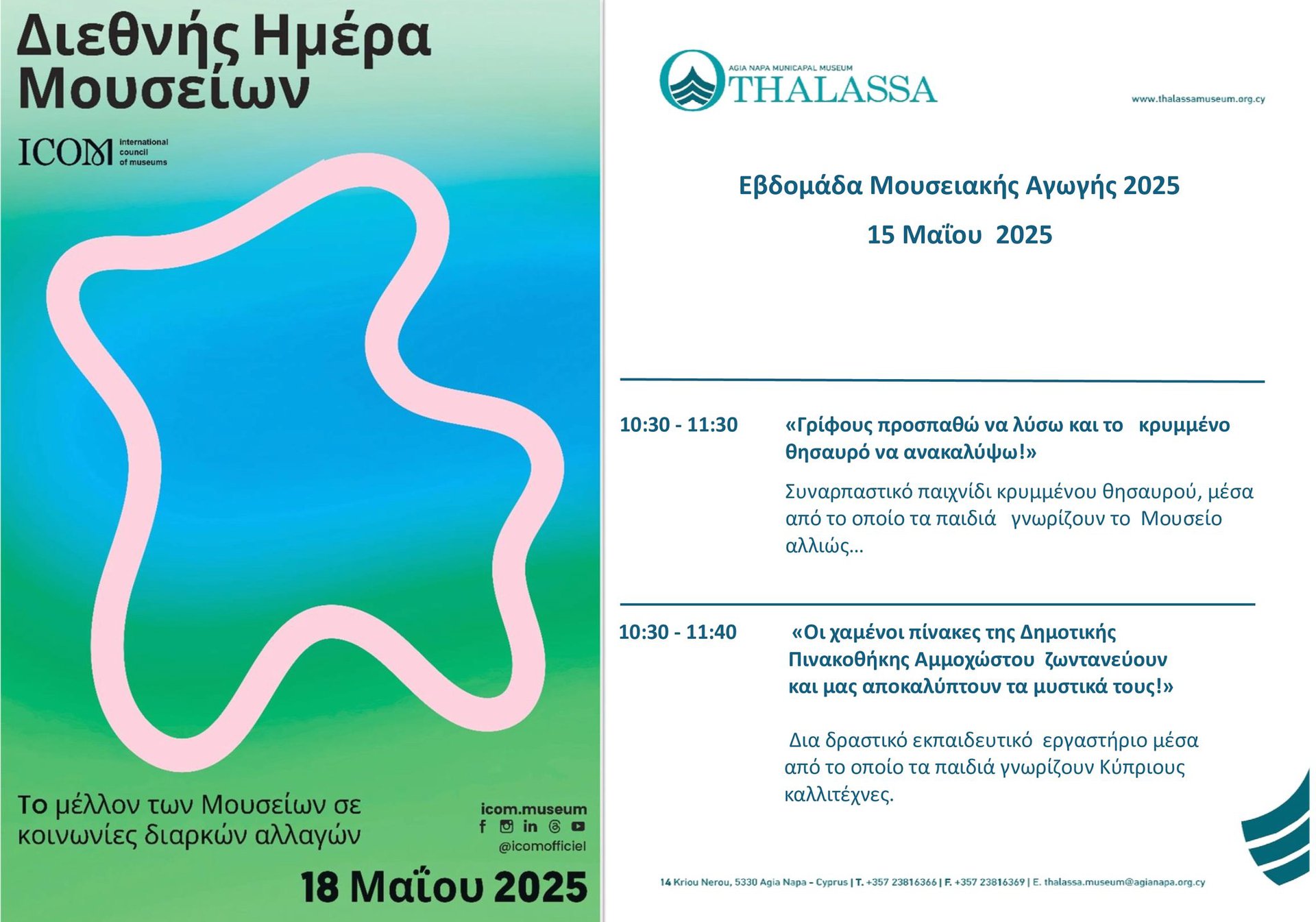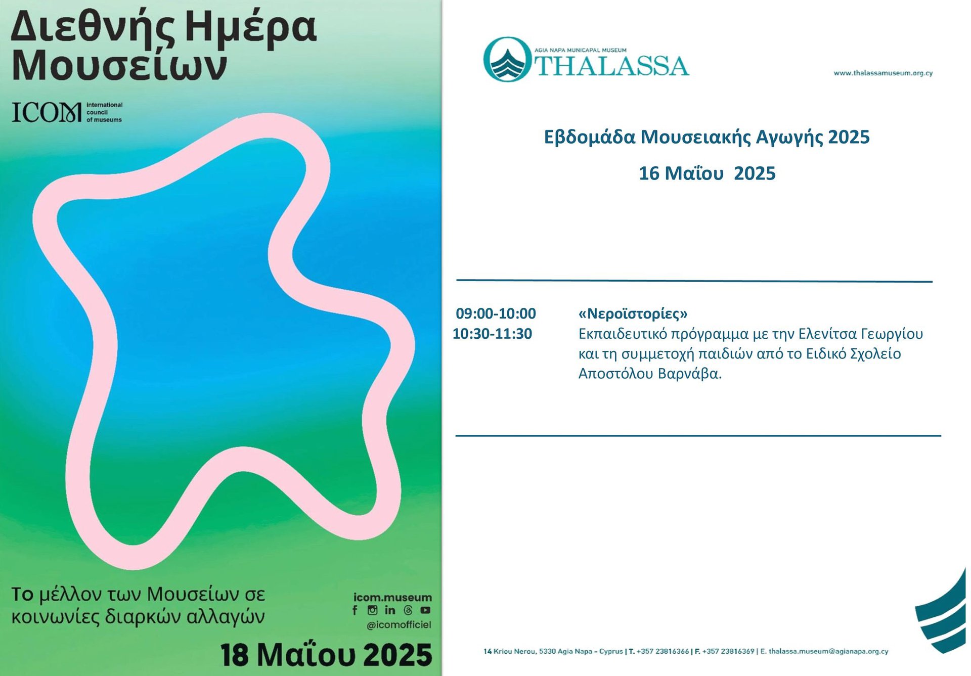 Το Δημοτικό Μουσείο Αγίας Νάπας THALASSA συμμετέχει ενεργά στον εορτασμό της Διεθνούς Ημέρας Μουσείων 2025, που φετος έχει θέμα: «Μουσεία και κοινωνίες σε διαρκή αλλαγή».