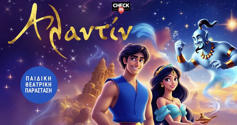 Το πιο διάσημο παραμύθι της Ανατολής , βγαλμένο μέσα από τις ‘’Χίλιες και μία νύχτες’’. Ο Αλαντίν, το αγόρι με την χρυσή καρδιά, θα μας ταξιδέψει πάνω από το παραμύθι της Σεχραζάτ, συντροφιά με το πραγματικά ΜΑΓΙΚΟ τζίνι του λυχναριού, όπου μέσα από τις απίστευτες περιπέτειες του, με μαγικές σπηλιές και μυστηριώδεις μάγους, ανακαλύπτει τελικά, τις πραγματικές αξίες της ζωής.