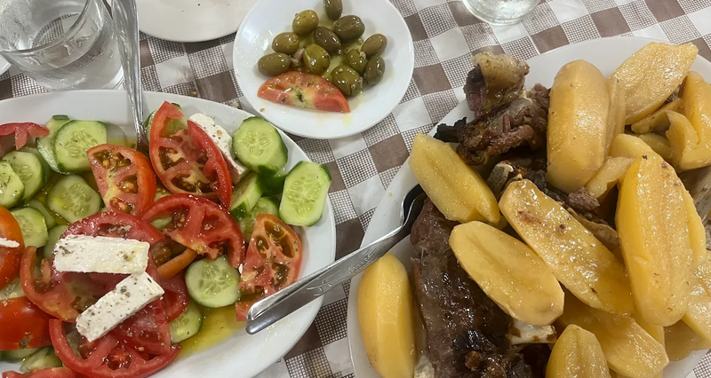 Το σερβίρισμα ολοκληρώνει τη γευστική εμπειρία: πατάτες‐«μέλι» που απορροφούν τους χυμούς του κρέατο, δροσερή αγγουροντομάτα, ξιδάτα λαχανικά για ισορροπία και ζυμωτό ψωμί που ρουφά ευλαβικά κάθε σταγόνα. Όλα έρχονται στο τραπέζι ζεστά, μέσα σε μια αυθεντικά φιλόξενη ατμόσφαιρα που θυμίζει κυριακάτικο τραπέζι στο χωριό.