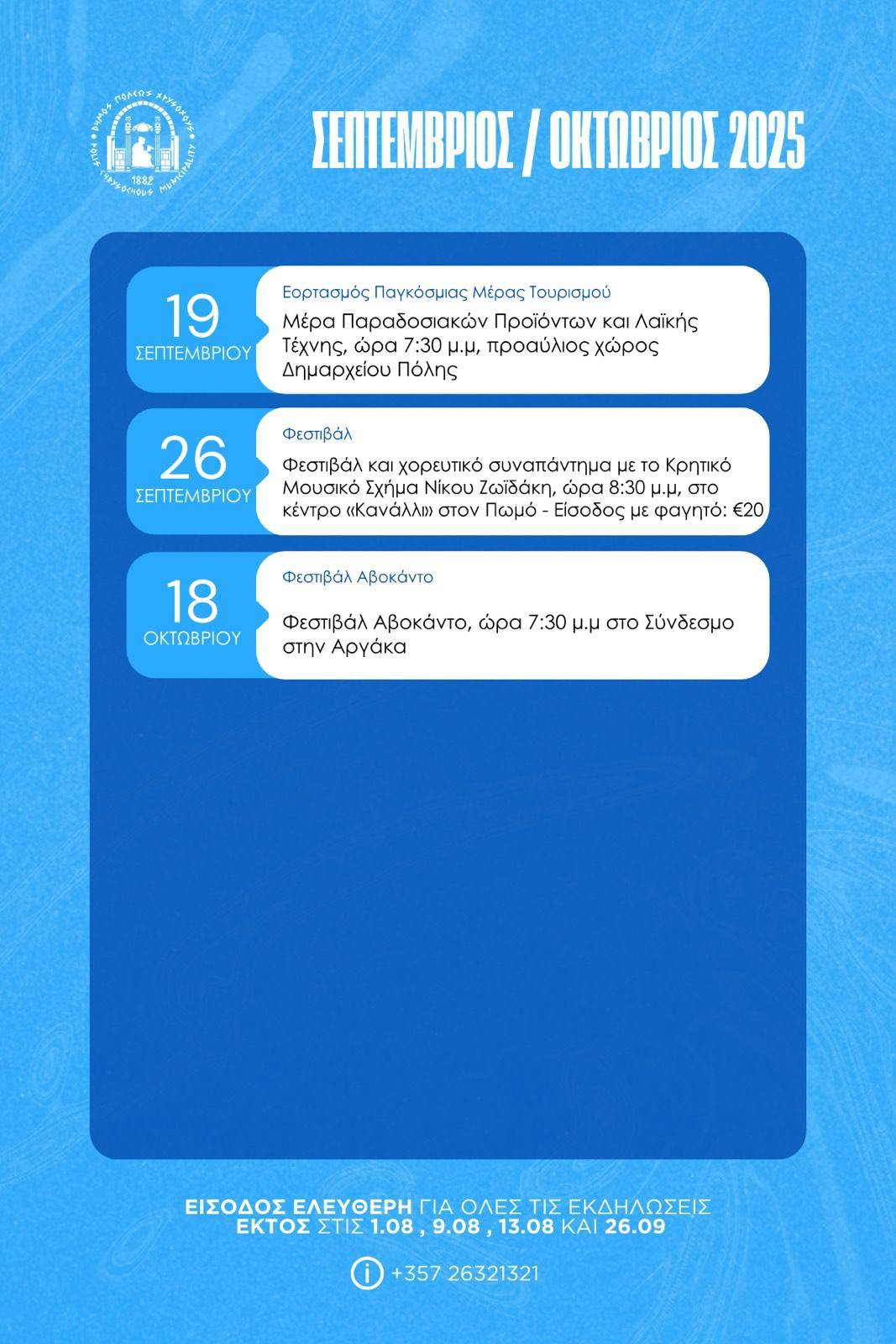 - 18 Οκτωβρίου: Φεστιβάλ Αβοκάντο, στον Σύνδεσμο στην Αργάκα, 19.30.