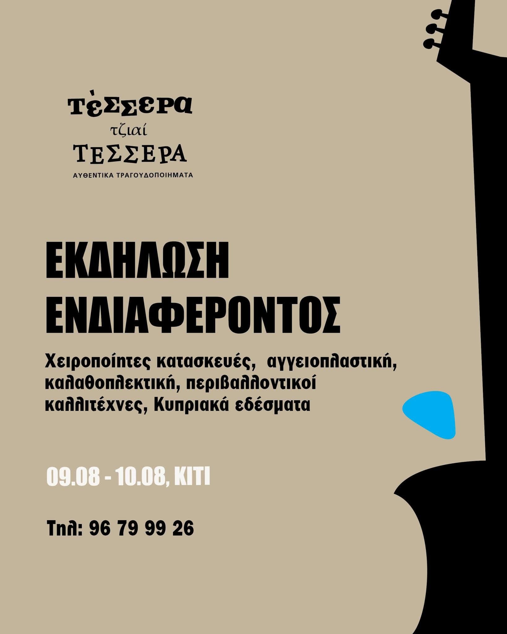 >> Σάββατο 9 & Κυριακή 10 Αυγούστου, Κήποι Δημοτικού Διαμερίσματος Κιτίου, 17:00-00:00.