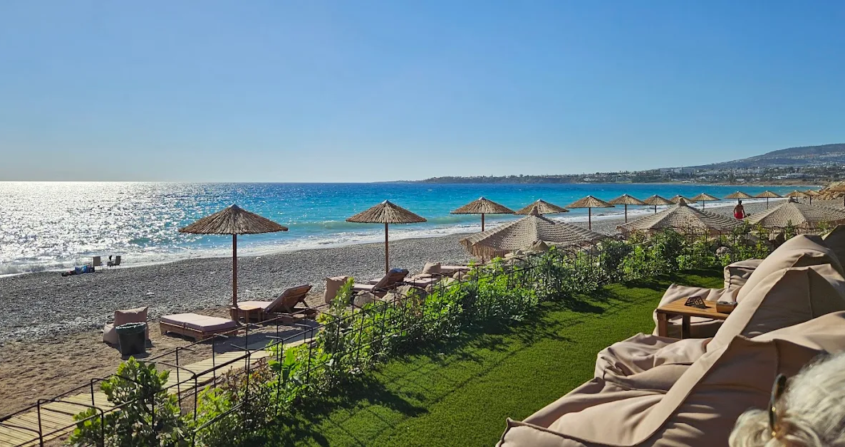 Οι άνετες ξαπλώστρες θαλάσσης στην παραλία, τα κομψά τραπέζια στο εστιατόριο, το ξύλο που κυριαρχεί παντού και οι πανύψηλες φοινικές, δημιουργούν έναν πραγματικό παράδεισο!