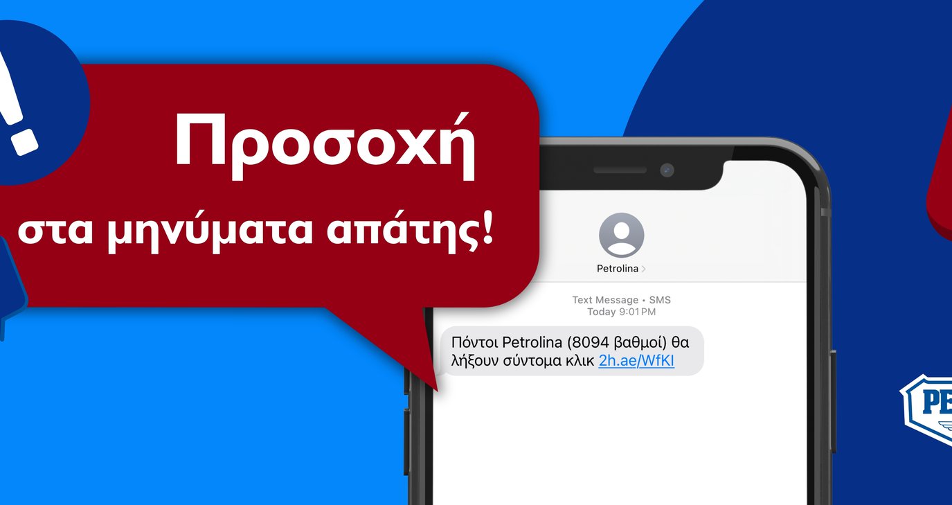 H Πετρολίνα δεν ζητά προσωπικά δεδομένα μέσω SMS ή αγνώστων ηλεκτρονικών συνδέσμων. Η Εταιρεία έχει ήδη προβεί στις δέουσες ενέργειες και ενημερώνει ότι δεν υπάρχει οποιαδήποτε διαρροή προσωπικών δεδομένων.