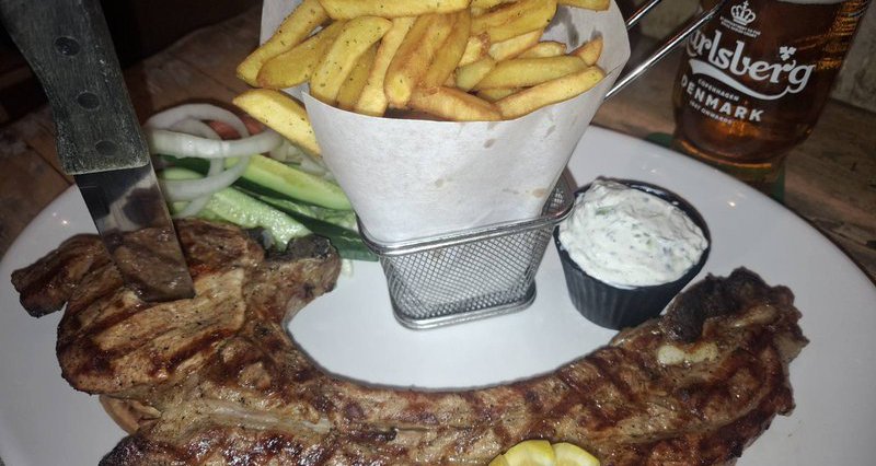 Πέρα από την ιδανική για σένα μπίρα, λοιπόν, εδώ θα σου σερβίρουν και την τέλεια μπριζόλα! Ένα πιάτο-πρόκληση θα λέγαμε! Μεγάλη, ζουμερή, χορταστική! Ψημένη, με τη σωστή δόση φωτιάς και αγάπης —με τραγανή εξωτερική κρούστα και ζουμερό, τρυφερό εσωτερικό. Η μπριζόλα εδώ φτιάχνεται από επιλεγμένο κρέας υψηλής ποιότητας και περνά από τη σχάρα με προσοχή και φροντίδα, για να φτάσει στο πιάτο σου ακριβώς όπως της αξίζει: με γεύση που ξεχωρίζει από την πρώτη μέχρι και την τελευταία μπουκιά. Με βάρος που αγγίζει τα 750g, είναι ό,τι πρέπει για πεινασμένους λάτρεις του καλού κρέατος. Συνοδεύεται από τραγανές τηγανητές πατάτες, λαχταριστή πίτα και φρέσκια σαλάτα από δροσερό κρεμμύδι, ντομάτα, αγγούρι και φύλλα μαρουλιού.