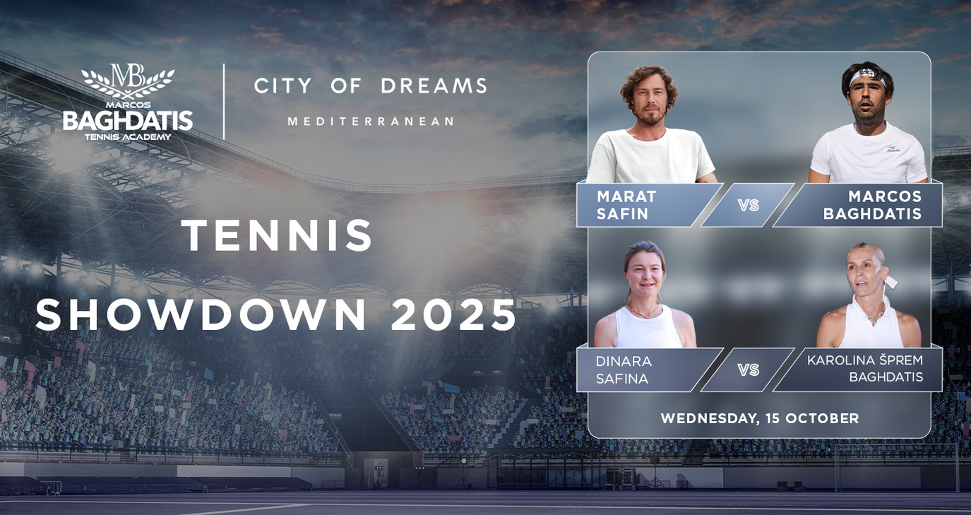 Η Ακαδημία Τένις Μάρκος Παγδατής γιορτάζει την πρώτη της επέτειο με ένα ανεπανάληπτο Tennis Showdown. Ζήστε από κοντά συναρπαστικές αναμετρήσεις ανάμεσα στους θρύλους του τένις: