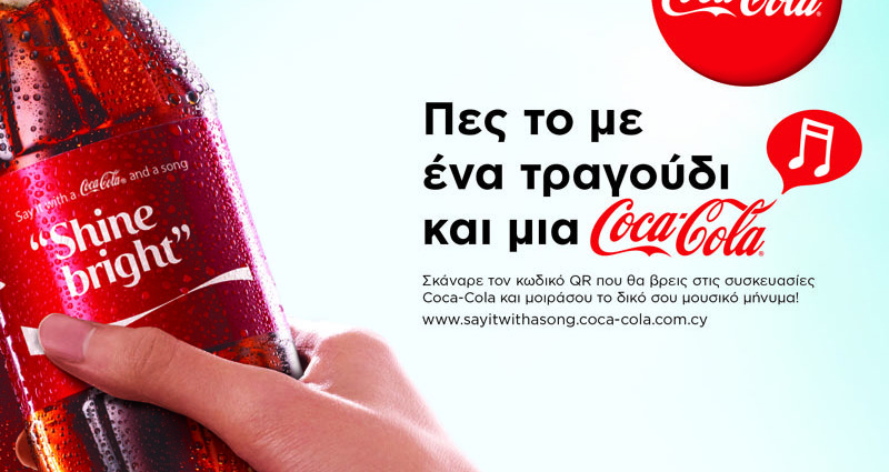 Μπορεί να μας κάνει να νιώσουμε πιο χαρούμενοι απλά με το να την ακούμε. Μπορεί να κολλήσει στο μυαλό μας για μέρες, και μπορεί να μας παρασύρει να κινηθούμε στο ρυθμό της, ακόμη και όταν δεν το θέλουμε! Και τώρα, αυτή η δύναμη βρίσκεται, κυριολεκτικά, στα χέρια σου. Αυτό το καλοκαίρι η αγαπημένη μας Coca-Cola στην Κύπρο θα φιλοξενήσει στις συσκευασίες της στίχους από τα πιο δημοφιλή ξένα και ελληνικά τραγούδια, και σε προσκαλεί να μοιραστείς αυτό που νιώθεις, αλλά και να απολαύσεις το καλοκαίρι με ένα τραγούδι και μία παγωμένη και απολαυστική Coca-Cola! Το μόνο που έχεις να κάνεις είναι να βρεις τη συσκευασία με το στίχο από το τραγούδι που σε εκφράζει, να σκανάρεις το QR code, και αυτόματα θα μεταφερθείς στο www.sayitwithasong.coke.com. Εκεί, θα μπορείς να ακούσεις και να δεις το απόσπασμα του τραγουδιού που έχεις επιλέξει, αλλά και πολλών άλλων ακόμη, και να τα μοιραστείς με τους φίλους σου, μέσα από τους social media λογαριασμούς σου!