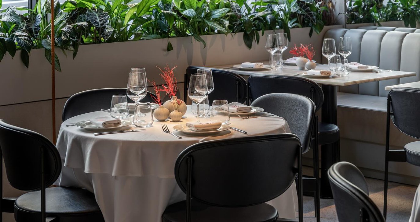 Αφού είχαμε κάνει κράτηση αρκετές ημέρες προηγουμένως -αφού είχαμε προγραμματίσει ένα επαγγελματικό ταξίδι-αστραπή-, το επισκεφθήκαμε ένα ηλιόλουστο μεσημέρι, επιλέγοντας (μία πιο χαλαρή) θέση στα τραπέζια έξω στο υπερυψωμένο πεζοδρόμιο, από όπου απολαμβάνει κανείς την περατζάδα της περιοχής. Ωστόσο, ρίχνοντας μια κλεφτή ματιά στο εσωτερικό, εντυπωσιαστήκαμε από τις σικάτες λεπτομέρειες της σάλας του: από τα μαρμάρινα τραπέζια, τις τοιχογραφίες με θαλάσσιες και μυθολογικές μορφές, μέχρι τα εντυπωσιακά φωτιστικά, όλα μοιάζουν να έχουν τον ρόλο τους!