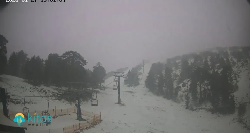 Χιονόπτωση με χιονόστρωση άρχισε να καταγράφεται στην περιοχή Τροόδους το απόγευμα Τρίτης, σύμφωνα με τη μετεωρολογική πλατφόρμα «kitaswaether.com».