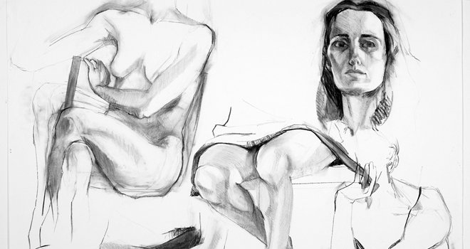 Τα έργα της συγκεκριμένης έκθεσης αποτελούν μέρος, της δουλειάς που εξελίχτηκε μεταξύ 2008-2011, καθώς επίσης και μερικά πρόσφατα έργα. Η φιγούρα μονοπωλεί το ενδιαφέρον της ζωγράφου και αποτελεί την αφετηρία της εικαστικής της αναζήτησης. Και ενώ οι φιγούρες είναι συνήθως ακέφαλες στα πιο πρόσφατα έργα, τα πορτραίτα αρχίζουν να απαιτούν όλο και συχνότερα την παρουσία του προσώπου, που έρχεται να συμπληρώσει την εκφραστικότητα των σωμάτων. Μολύβι, κάρβουνο, μελανάκια και ακουαρέλες, είναι τα υλικά με τα οποία δουλεύει η ζωγράφος και η γραφή του κάθε μέσου, επιβάλλεται ταυτόχρονα σαν μια οπτική.