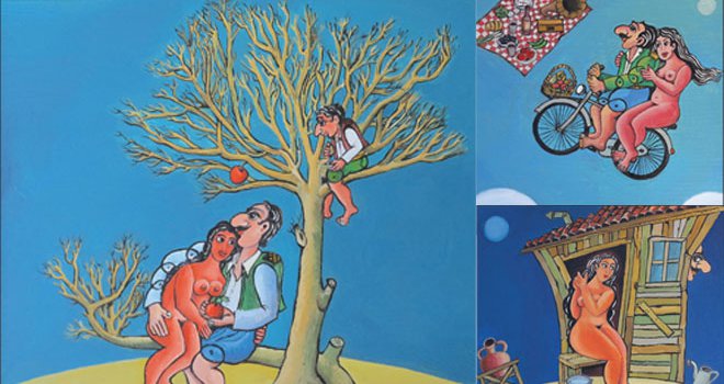 Με τον Καραγκιόζη, την Αγλαία, τα κολλητήρια, την παράγκα, το σεράϊ, τον μπερντέ στους 37 πίνακες (λάδι σε καμβά), μικρού και μεσαίου μεγέθους ο σκηνογράφος και ενδυματολόγος συναντάει τον εικαστικό Κώστα Καυκαρίδη που στα έργα του "σαν σκιές γλιστρούν λόγια και εικόνες, κάρα σκουπιδιάρικα φεύγουν οι χειμώνες, κι αν δεν ντρέπεσαι να καθίσεις πίσω, έλα στην παράσταση να σε γιουχαίσω".