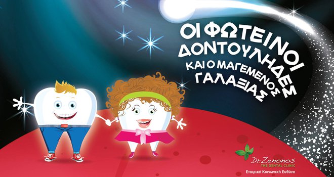 Η Dr. Zenonos – The Dental Clinic, μέσα στο πλαίσιο της εταιρικής κοινωνικής ευθύνης της, παρουσιάζει το δεύτερο παραμύθι της εκπαιδευτικής σειράς παιδικών εκδόσεων “Οι Περιπέτειες στη Δοντούπολη”, "Οι Φωτεινοί Δοντούληδες και ο Μαγεμένος Γαλαξίας".
