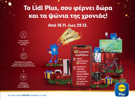 Τα φετινά Χριστούγεννα, η εταιρεία μέσω του προγράμματος πιστότητας Lidl Plus, μοιράζει σε 30 τυχερούς χρήστες της εφαρμογής μοναδικά δώρα αξίας χιλιάδων ευρώ που υπόσχονται να κάνουν την καθημερινότητα πιο εύκολη και να χαρίσουν στιγμές χαράς.