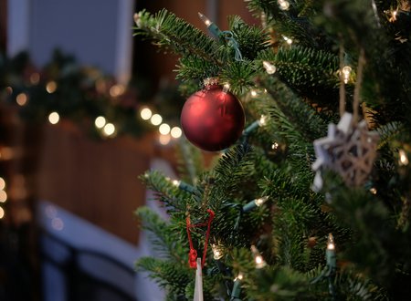 Για όλο τον μήνα Δεκέμβριο, το λόμπι του ξενοδοχείου μετατρέπεται στο πιο κοσμοπολίτικο και ονειρικό σημείο του νησιού