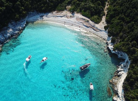 Η παραλία έχει λευκή άμμο, τιρκουάζ νερά και κυπαρίσσια που φτάνουν μέχρι την ακτή