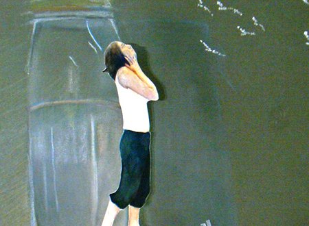 Αφήνοντας, αυτή τη φορά, την παραδοσιακή τεχνική της λαδομπογιάς, πειραματίζεται μεΠλεξιγκλάς