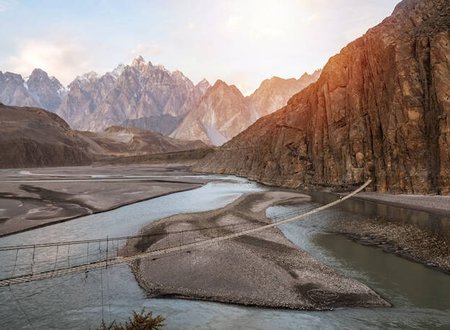 Ξύλινη, κρεμαστή και με αρκετά κενά πάνω από ποταμό στο Βόρειο Πακιστάν