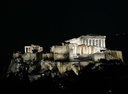 Το εμβληματικό μνημείο λάμπει στον νυχτερινό ουρανό της Αθήνας