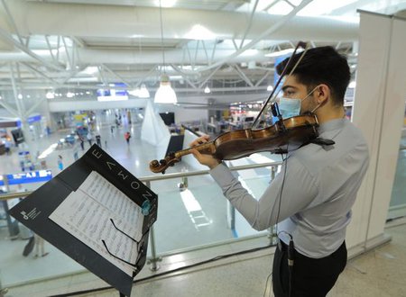 Ευχάριστη έκπληξη περίμενε τους ταξιδιώτες στο αεροδρόμιο της Αθήνας, όπου τους συνόδευσαν μουσικές νότες.