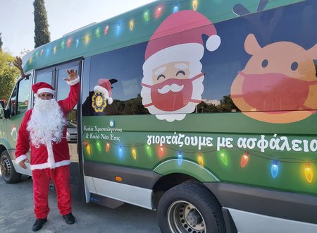 Ο Άγιος Βασίλης σκορπά το χριστουγεννιάτικο πνεύμα με τραγούδια και μουσική κάνοντας βόλτες σε γειτονιές της πόλης