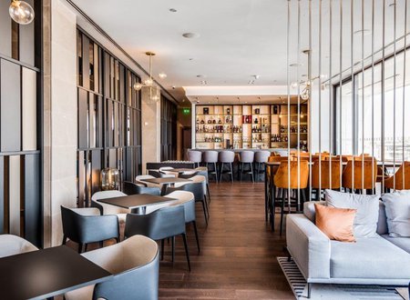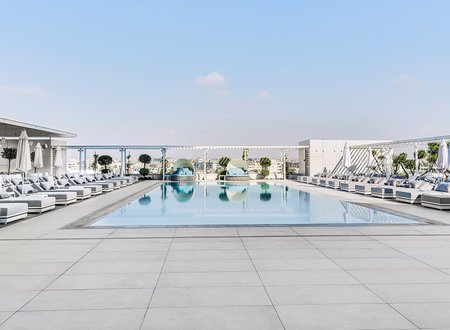 Οι χώροι του ξενοδοχείου, η πισίνα στον 5ο και το εντυπωσιακό Sky Bar με τα 97 gin στον 16ο όροφο