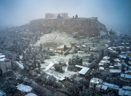 Μαγεύει η χιονισμένη Ακρόπολη