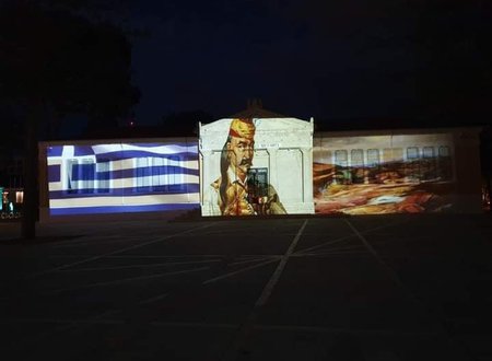 Εντυπωσιακή φωταγώγηση των κτιρίων της Πάφου με την Ελληνική Σημαία και μορφές Ηρώων του ΄21