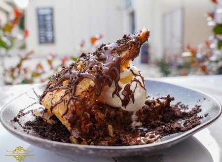 Το κρατσανιστό μπακλαβά με λιωμένη (ζεστή) σοκολάτα και τραγανό μπισκοτάκι;