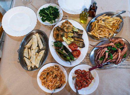 Η αρχή της Σαρακοστής μάς βρίσκει να τρώμε κολοκυθοκεφτέδες, πούλλες και μελιτζάνες γιαχνί σε μία δημοφιλή ταβέρνα!