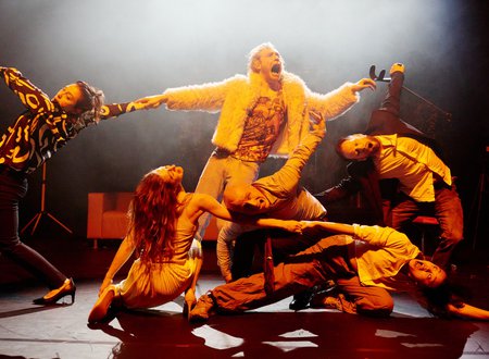 Ο κορυφαίος διεθνούς φήμης ηθοποιός επί σκηνής μαζί με δύο πιάνα, ένα βιολί και ένα ακορντεόν