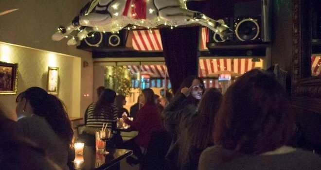 Με διακόσμηση και μοτίβα που παραπέμπουν στη βικτωριανή εποχή, έντονες πινελιές τσίρκου και λούνα παρκ, φωτιστικά-καπέλα, πίνακες με επιβλητικές κορνίζες, βελούδινες κουρτίνες με χρυσά κρόσσια πίσω από το μπαρ, "αλογάκια" του λούνα παρκ να δεσπόζουν στο χώρο, αλλά και τη φωτεινή επιγραφή στην είσοδο... η νέα άφιξη στην πόλη θα σε εντυπωσιάσει...