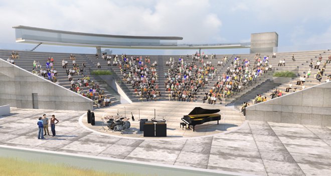 Το Υπαίθριο Αμφιθέατρο θα είναι χωρητικότητας 2,117 θέσεων και θα περιλαμβάνει μεταξύ άλλων χώρους πολιτιστικών εκδηλώσεων, εκθεσιακούς χώρους καφετέρια κ.ά.