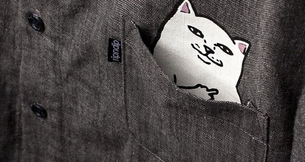 Ένας πονηρός γάτος κρύβεται στο τσεπάκι σου... ονομάζεται Lord Nermal και είναι η μασκότ της εταιρείας Ripndip με έδρα το LA.