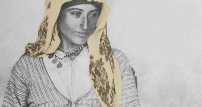 Καθιστή ηλικιωμένη γυναίκα. Στο κεφάλι φορεί σταμπωτό μαντήλι. Φωτ. John Thomson, 1878.