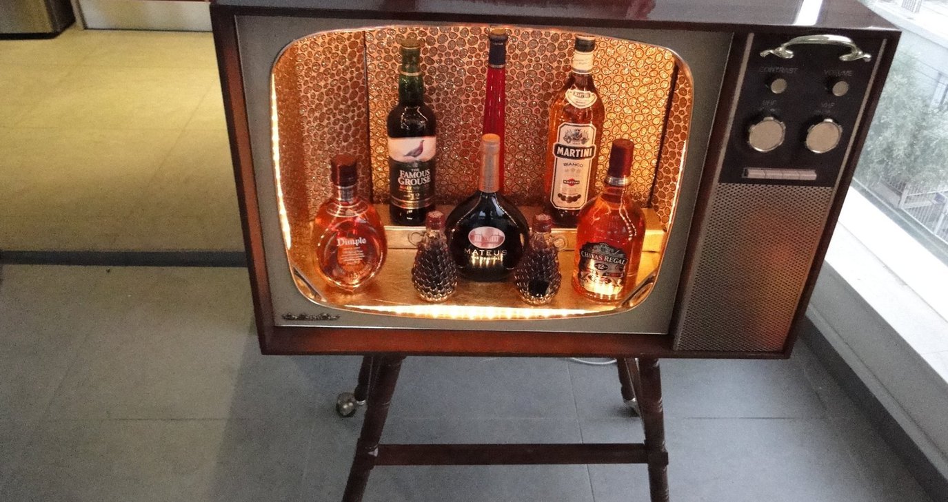 Τηλεόραση του '50 που μετατράπηκε σε bar, παλιό έπιπλο ραπτομηχανής που μετατράπηκε σε iPad desk, παλιό ραδιόφωνο του '40 που μετατράπηκε σε ενυδρείο και αρκετά αλλά..