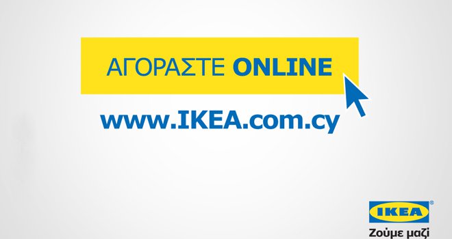 "Επισκεφτείτε το site www.IKEA.com.cy, εμπνευστείτε, επιλέξτε τα προϊόντα που σας ταιριάζουν, δημιουργήστε τους δικούς σας συνδυασμούς και κάντε τις αγορές σας στις πάντα χαμηλές τιμές ΙΚΕΑ".
