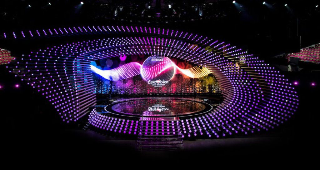 Οι προετοιμασίες για το διαγωνισμό στο Wiener Stadhalle της Αυστρίας που θα φιλοξενήσει τους δύο ημιτελικούς και τον τελικό σε λίγες μέρες, συνεχίζονται. Αυτή είναι η σκηνή της Eurovision που εντυπωσιάζει με μια πρώτη ματιά. Η σκηνή έχει σχήμα ματιού, με πλάτος 44 μέτρα, ύψος 14,3 μέτρα, βάθος 22 μέτρα και αποτελείται από 1.288 προβολείς LED.